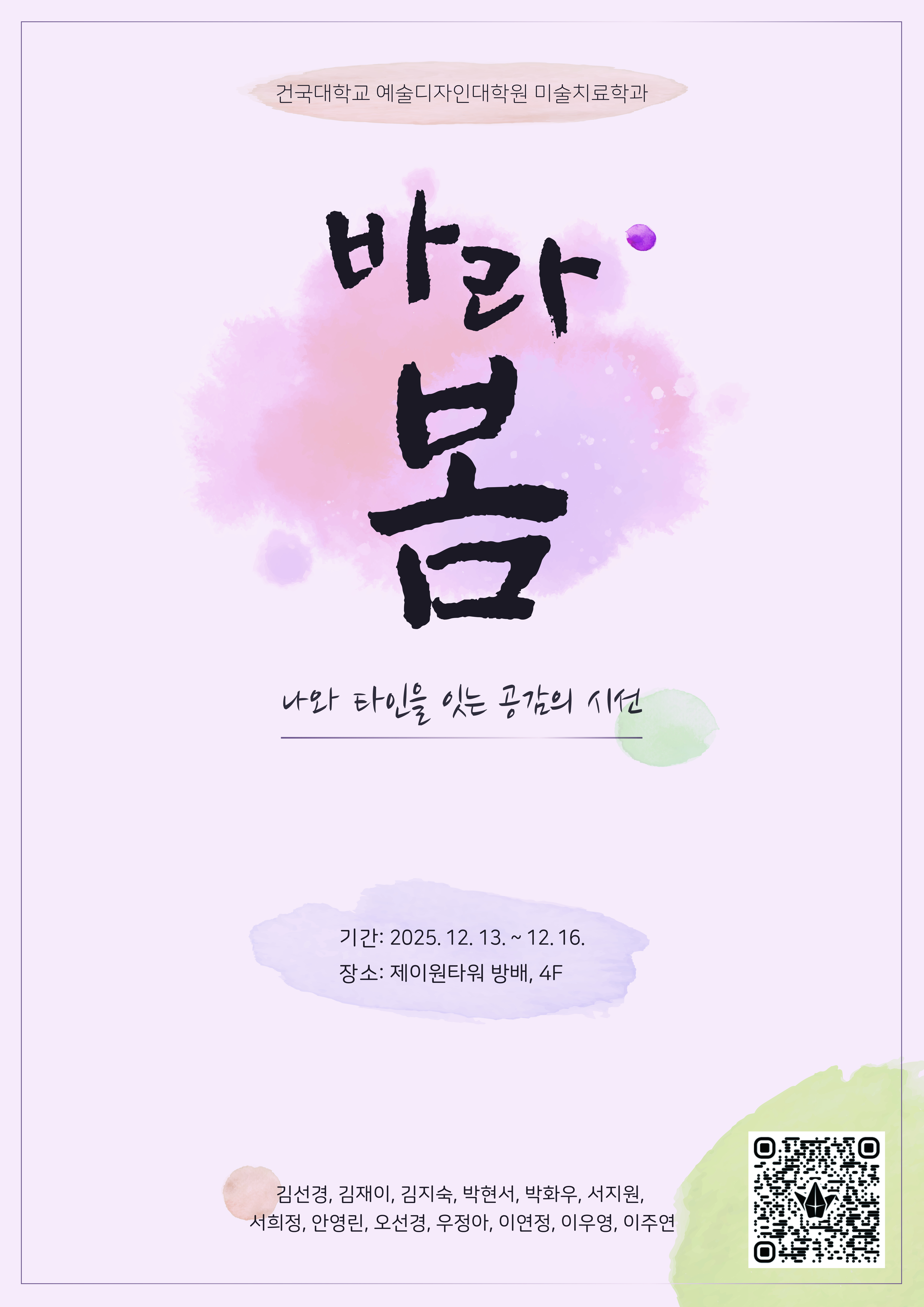 예술디자인대학원 미술치료학과에서 "바라봄 - 나와 타인을 잇는 공감의 시선"을 주제로 작품 전시회를 진행합니다.